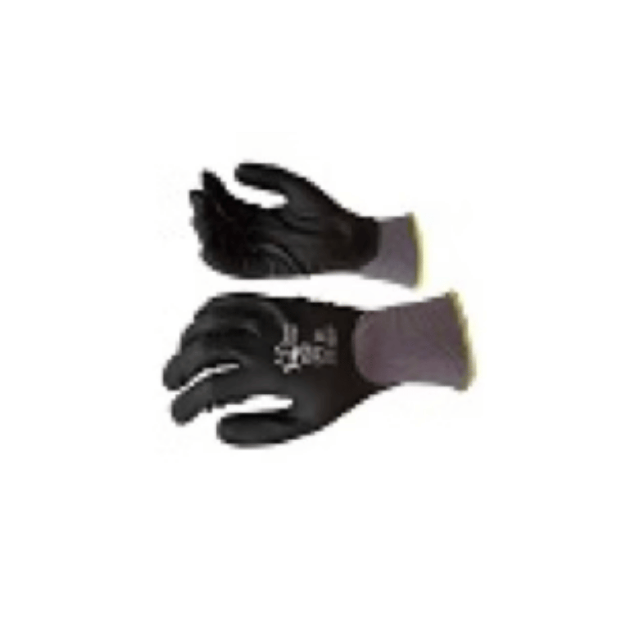 15 gauge grey nylon liner, black water base pu fully coated. Packaging: 12/PACK 120/BOX